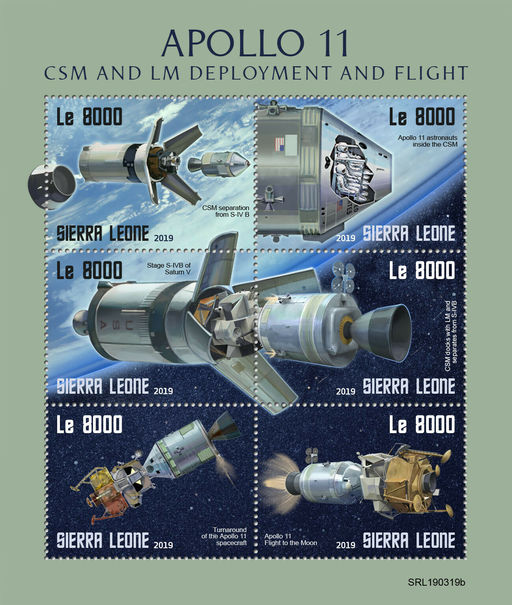 名称:塞拉利昂3月28日发行的阿波罗11号登月50周年小全张1