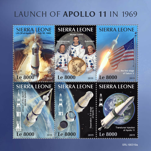 名称:塞拉利昂3月28日发行的阿波罗11号登月50周年小全张