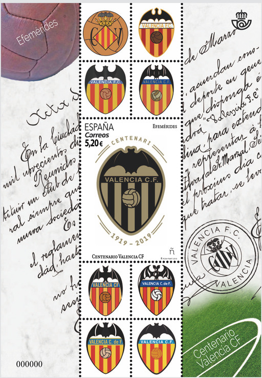 名称:西班牙3月18日发行瓦伦西亚足球俱乐部100周年邮票