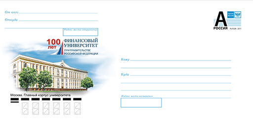 名称:俄罗斯3月1日发行俄罗斯联邦政府财政金融大学100周年邮资封