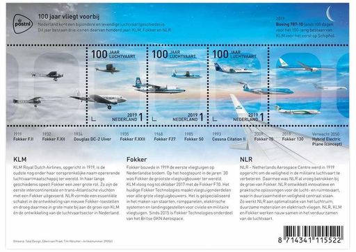 名称:荷兰3月11日发行荷兰航空100年邮票