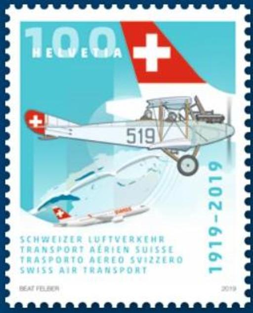 名称:瑞士3月7日发行瑞士航空运输100周年邮票