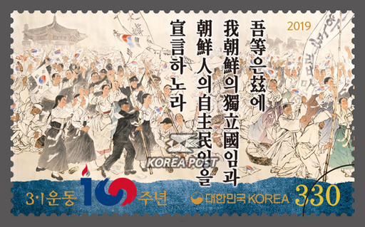 韩国2月28日发行三一运动100周年邮票