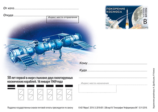名称:俄罗斯1月16日发行载人太空首次对接50周年邮资片