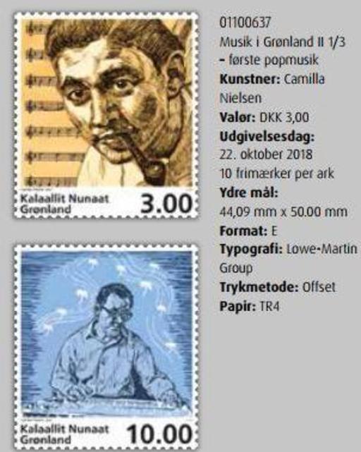 格陵兰岛10月22日发行格陵兰岛音乐(二)邮票