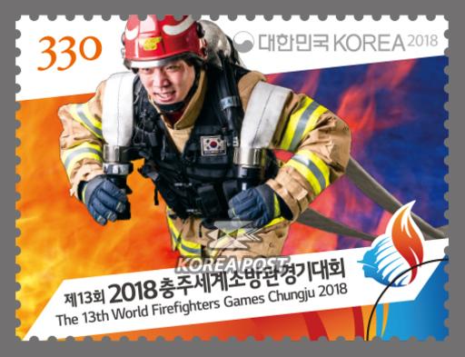 韩国9月10日发行第13届世界消防竞技大赛2018忠州邮票