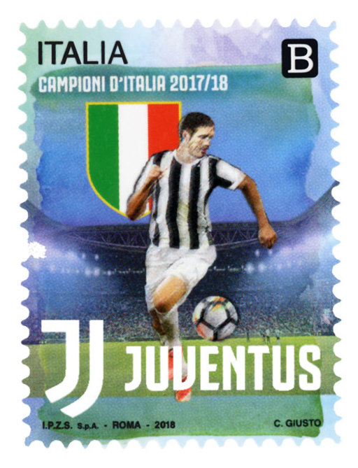 意大利7月28日发行意甲2017-2018赛季冠军尤文图斯邮票