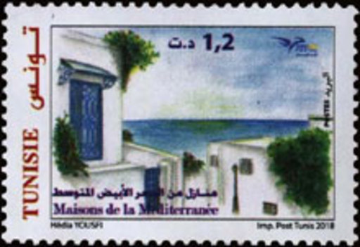 突尼斯7月9日发行地中海邮政联盟2018主题地中海的房屋邮票