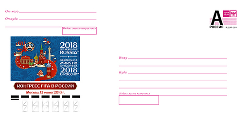 名称:俄罗斯6月8日发行2018俄罗斯FIFA世界杯莫斯科国际足联大会邮资封
