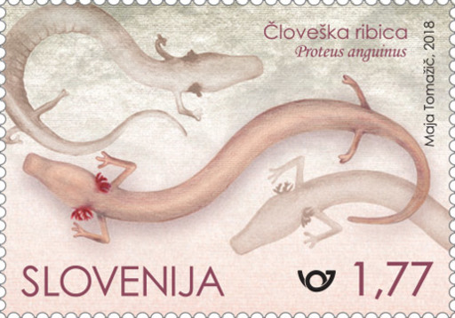 名称:斯洛文尼亚5月25日发行人类鱼型祖发现250周年邮票