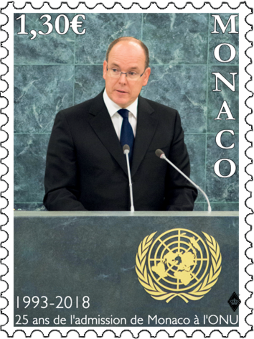 摩纳哥5月28日发行摩纳哥被接纳为联合国会员25周年周年