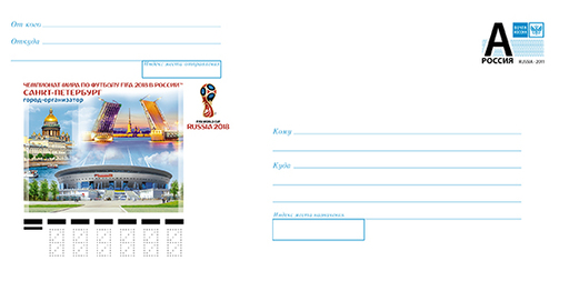 名称:俄罗斯5月11日发行2018俄罗斯FIFA世界杯圣彼得堡邮资封