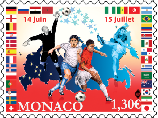 摩纳哥4月10日发行俄罗斯第21届世界杯足球赛邮票