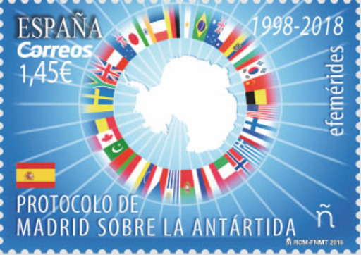 西班牙1月10日发行南极条约环境保护议定书1998-2018邮票