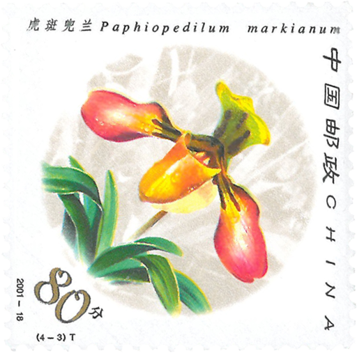 兰科兜兰属,为多年生草本植物。原产于亚洲的印度、缅甸、泰国、马来西亚、中国以及新几内亚的广大地区,是世界上栽培最早和最普及的洋兰之一。我国兜兰属植物资源十分丰富,主要产于西南各省区。兜兰的茎较短,叶抱茎生呈长披针形,有绿叶种和斑叶种两类,分别产于高山地区和低海拔山区或平地。兜兰花形奇特,花期持久,花色异彩纷呈,花姿典雅秀美,是兰花中的上品,为世界一级重点保护濒危植物。